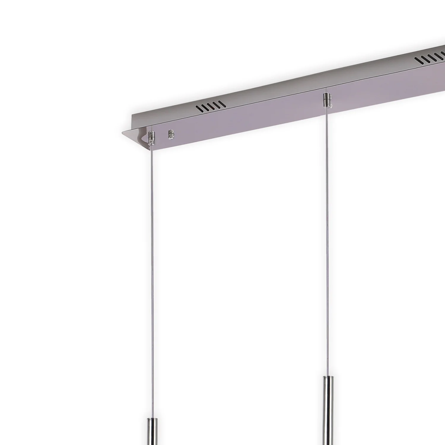 L'apparecchio funziona con tre lampadine con attacco E14 fino a 40W (lampadine non incluse). Le lampadine a LED sono consigliate per garantire efficienza e durata. Inoltre, è possibile personalizzare l'altezza dei pendenti in base alle proprie preferenze.