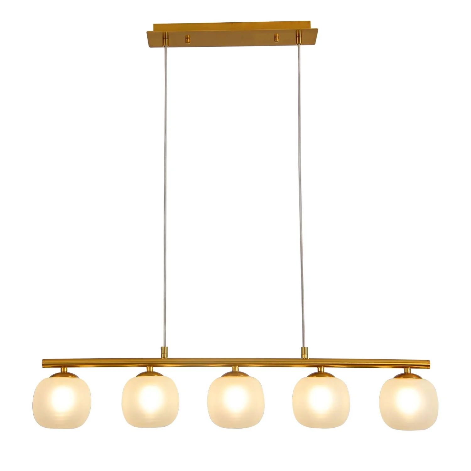 La Lampada da Soffitto 5 Luci Ferro Dorato / Vetro Bianco Opal Nicoletta offre una soluzione di illuminazione elegante e pratica per la tua casa. Il suo design distintivo e l’altezza regolabile la rendono un’opzione versatile e attraente per qualsiasi spazio.