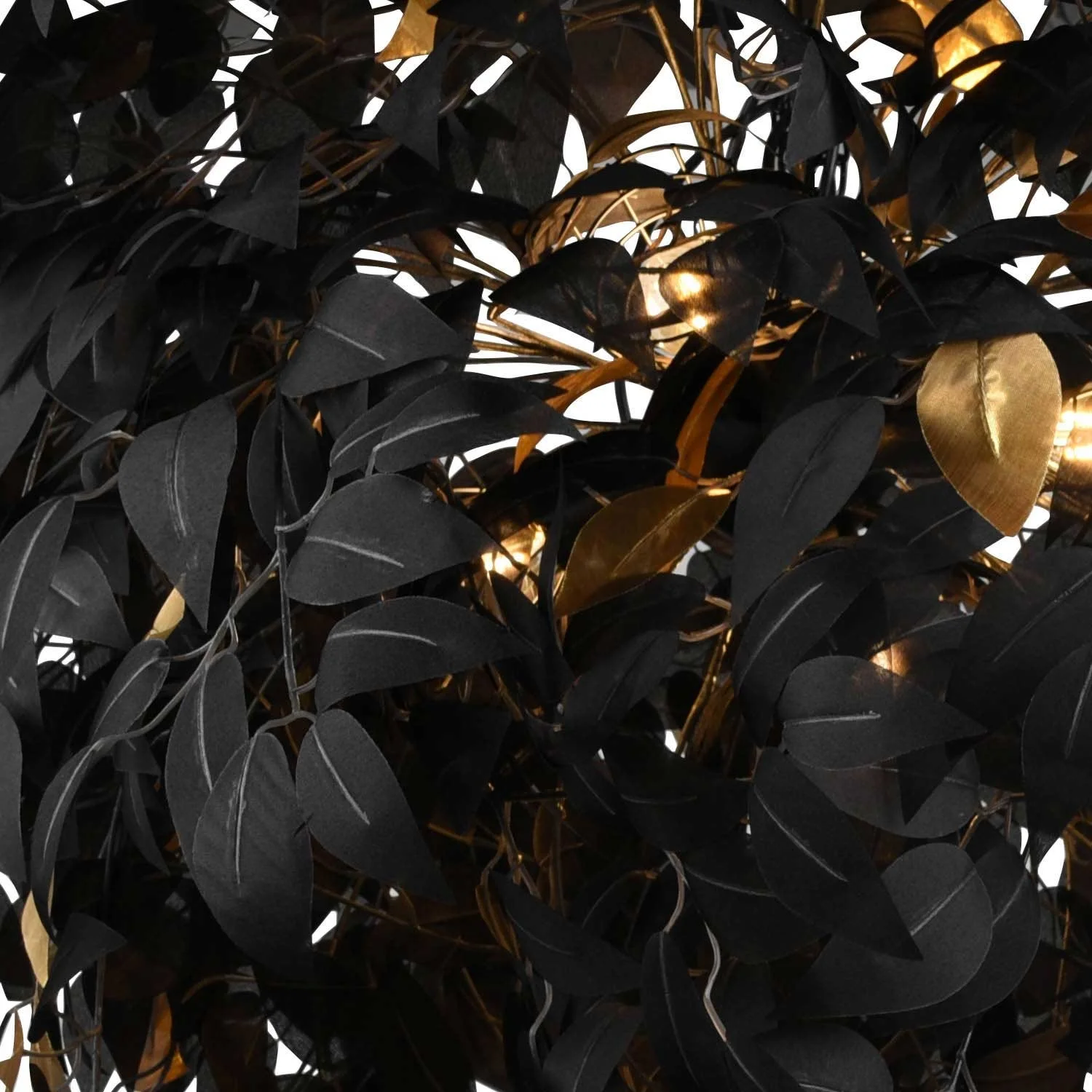 Bellissima lampada da soffitto a 4 luci composta da una struttura in metallo nero opaco con foglie in plastica nero-oro.