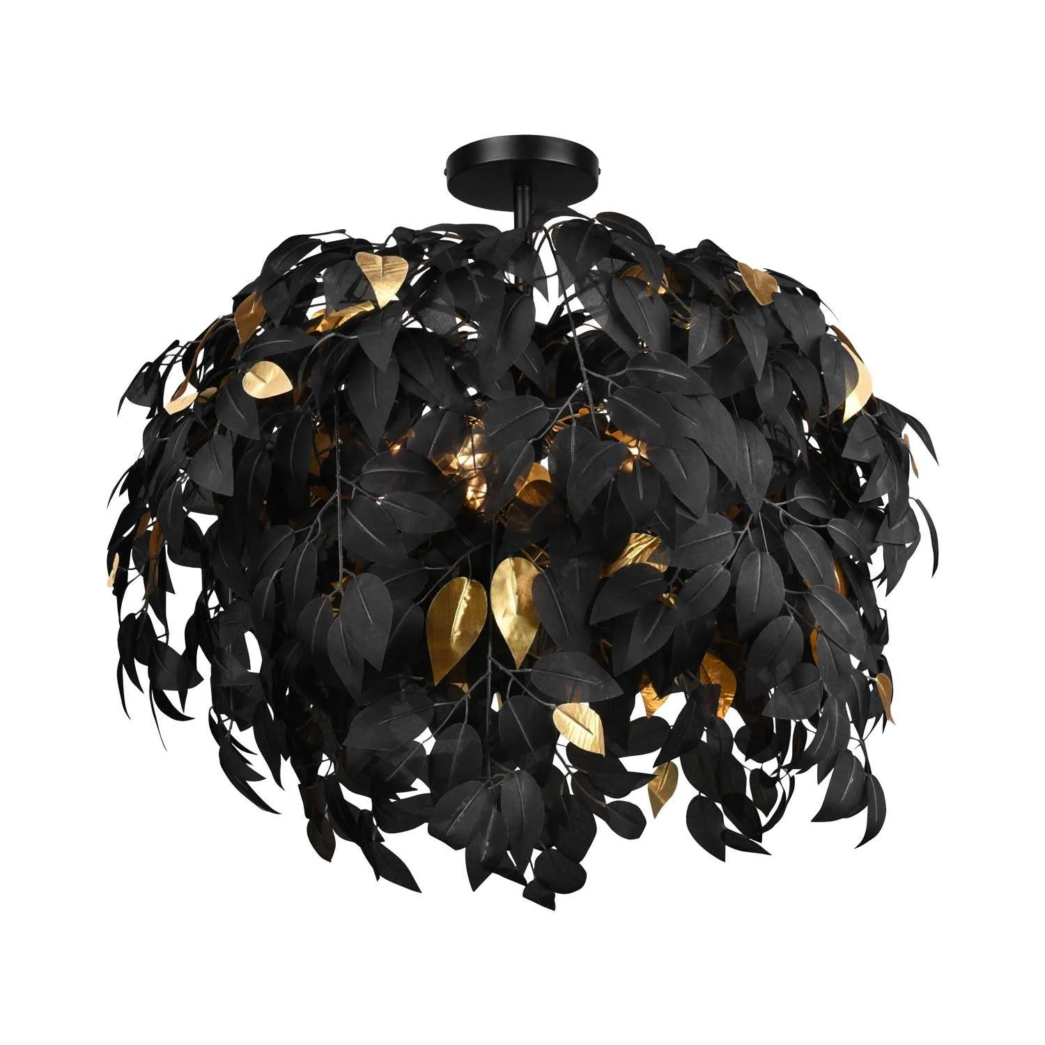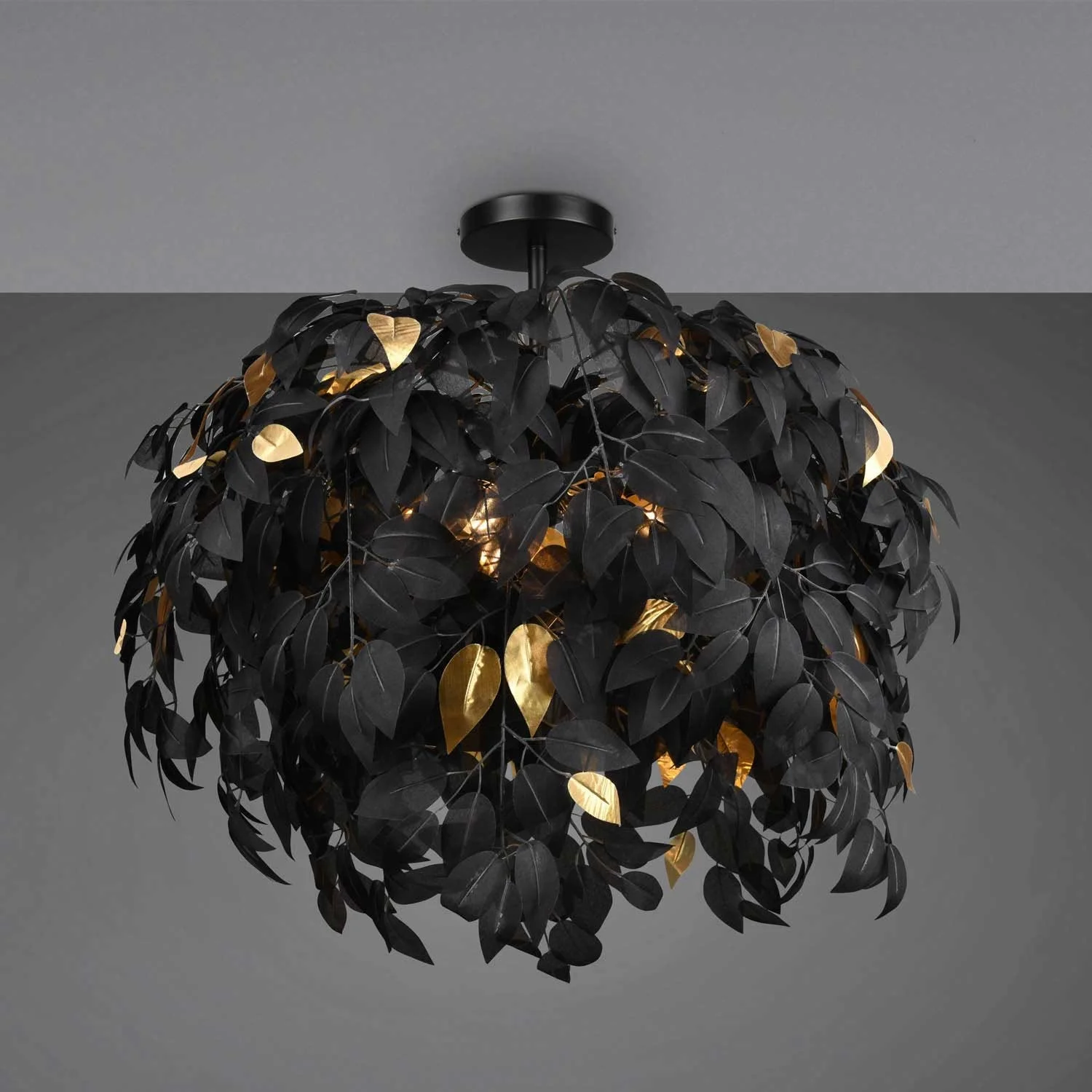 LAMPADA DA SOFFITTO 4 LUCI Ø 70CM FOGLIE NERE