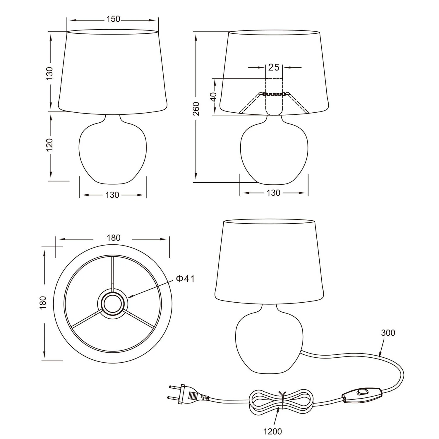 È una lampada da tavolo che vi piacerà per aggiungere un tocco naturale alle stanze della vostra casa, come il soggiorno e le camere da letto. È una lampada da tavolo che vi piacerà per aggiungere un tocco naturale alle stanze della vostra casa, come il soggiorno e le camere da letto. La struttura è in ceramica con finitura in finto legno e il paralume è in tessuto beige. Funziona con 1 lampadina con attacco E14 da 40 W al massimo (lampadina non inclusa). La lampadina consigliata si trova nella sezione prodotti correlati. Misure: diametro: 18 cm e altezza: 26 cm. Peso: 0,595 Kg Dimensioni dell'imballaggio: Larghezza:18 cm, Altezza:19 cm, Profondità:18 cm (1 confezione). Peso: 0,720 Kg *Incluso cavo interruttore.