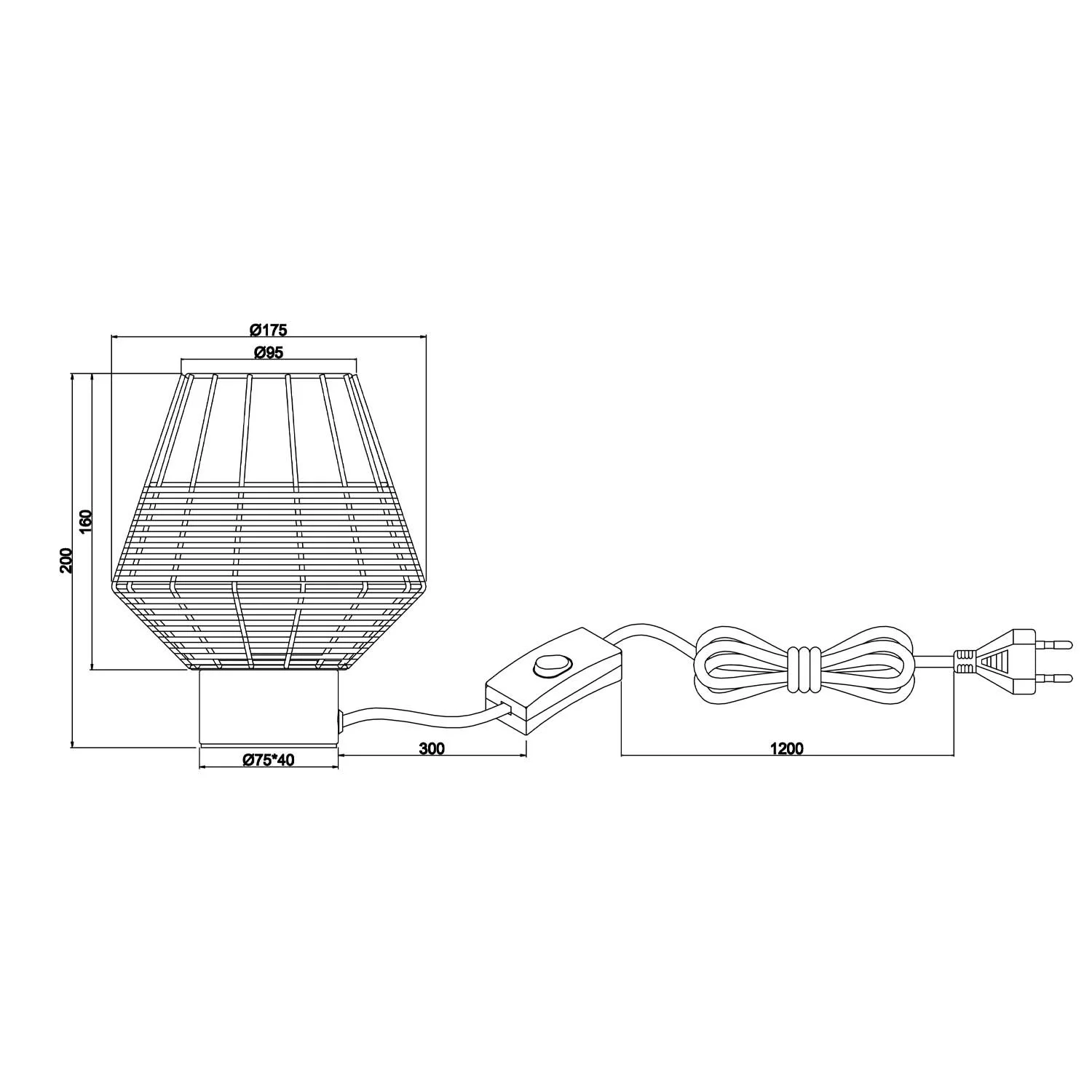 Questa bella lampada da tavolo della collezione Galadriel è realizzata in rete di rattan con finitura nera. Questa è una bellissima lampada da tavolo della collezione Galadriel, realizzata in rete di rattan con finitura nera. L'opzione perfetta per completare l'illuminazione di ambienti come il soggiorno o la camera da letto, ottenendo una decorazione creativa e diversa. Funziona con 1 lampadina con attacco E27 di massimo 40 W (lampadina non inclusa). Misure: diametro: 17 cm e altezza: 20 cm Peso: 0,4 Kg Dimensioni dell'imballaggio: Larghezza: 18 cm, Altezza: 21 cm, Profondità: 18 cm (1 confezione). Peso: 0,550 Kg *Cavo dell'interruttore incluso.