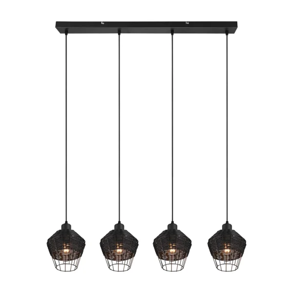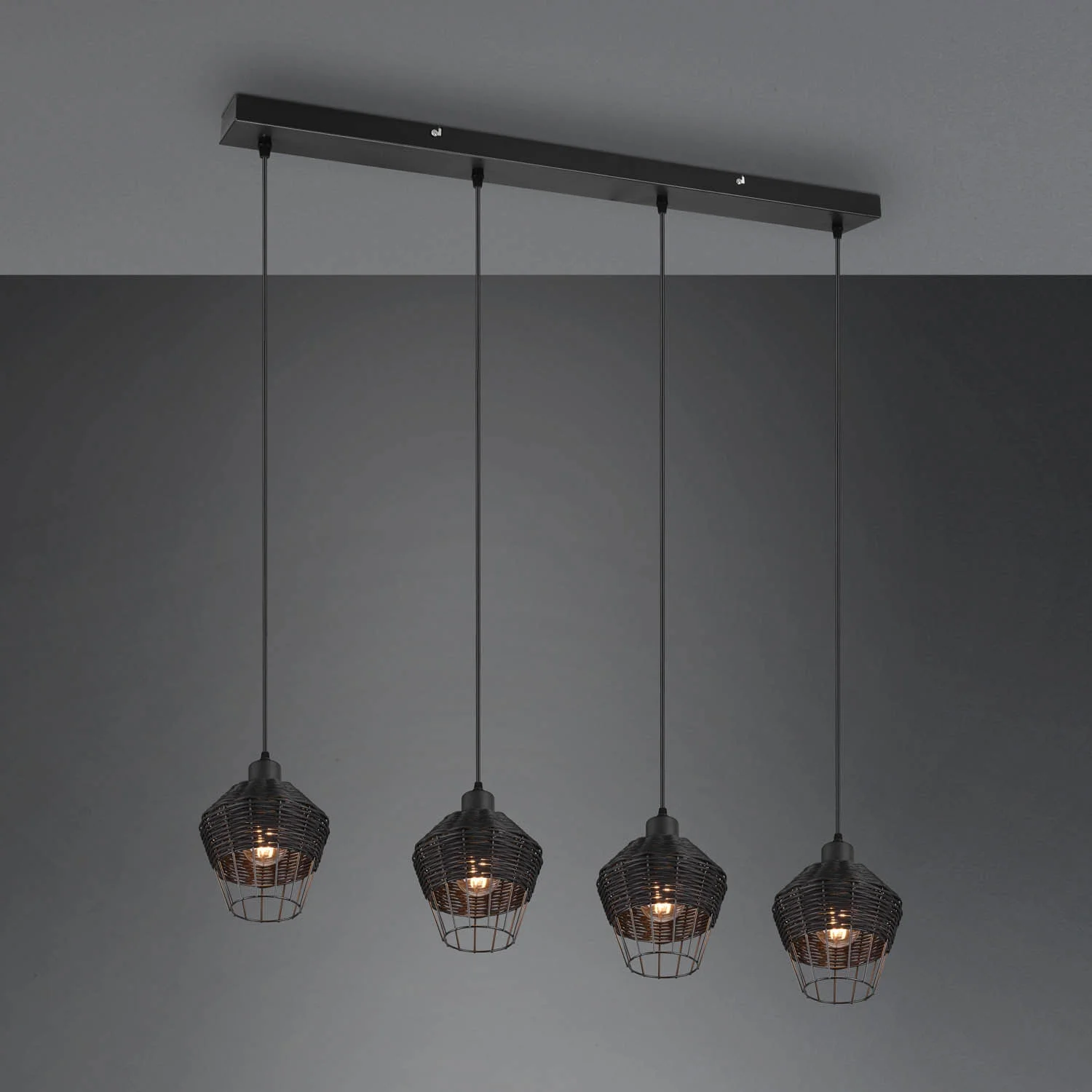 LAMPADA DA SOFFITTO 4 LUCI IN RATTAN NERO GALADRIEL