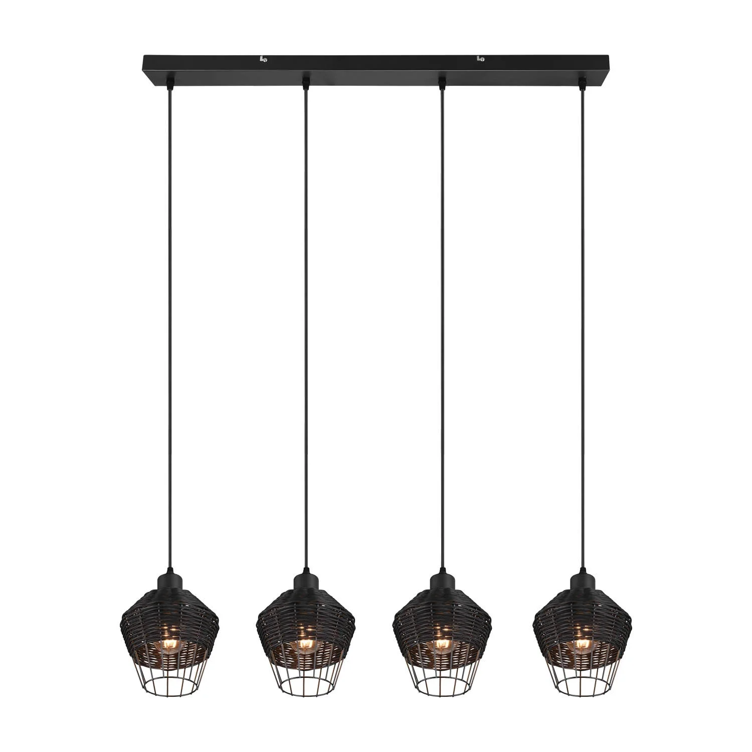 LAMPADA DA SOFFITTO A 4 LUCI IN RATTAN NERO GALADRIEL