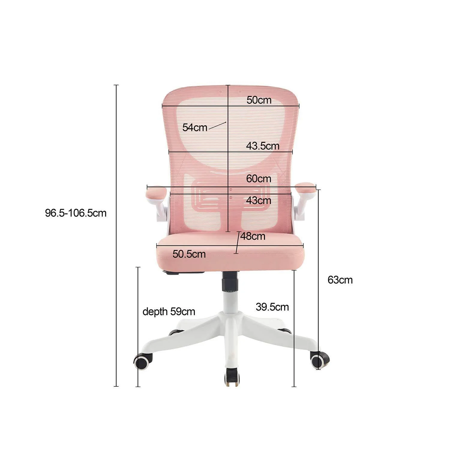 Realizzato in tessuto di nylon rosa con struttura e braccioli in polipropilene. Anche le ruote sono in polipropilene con finitura nera e sono antigraffio per proteggere il pavimento.