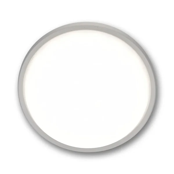 - Design circolare in PVC bianco con diffusore in policarbonato.