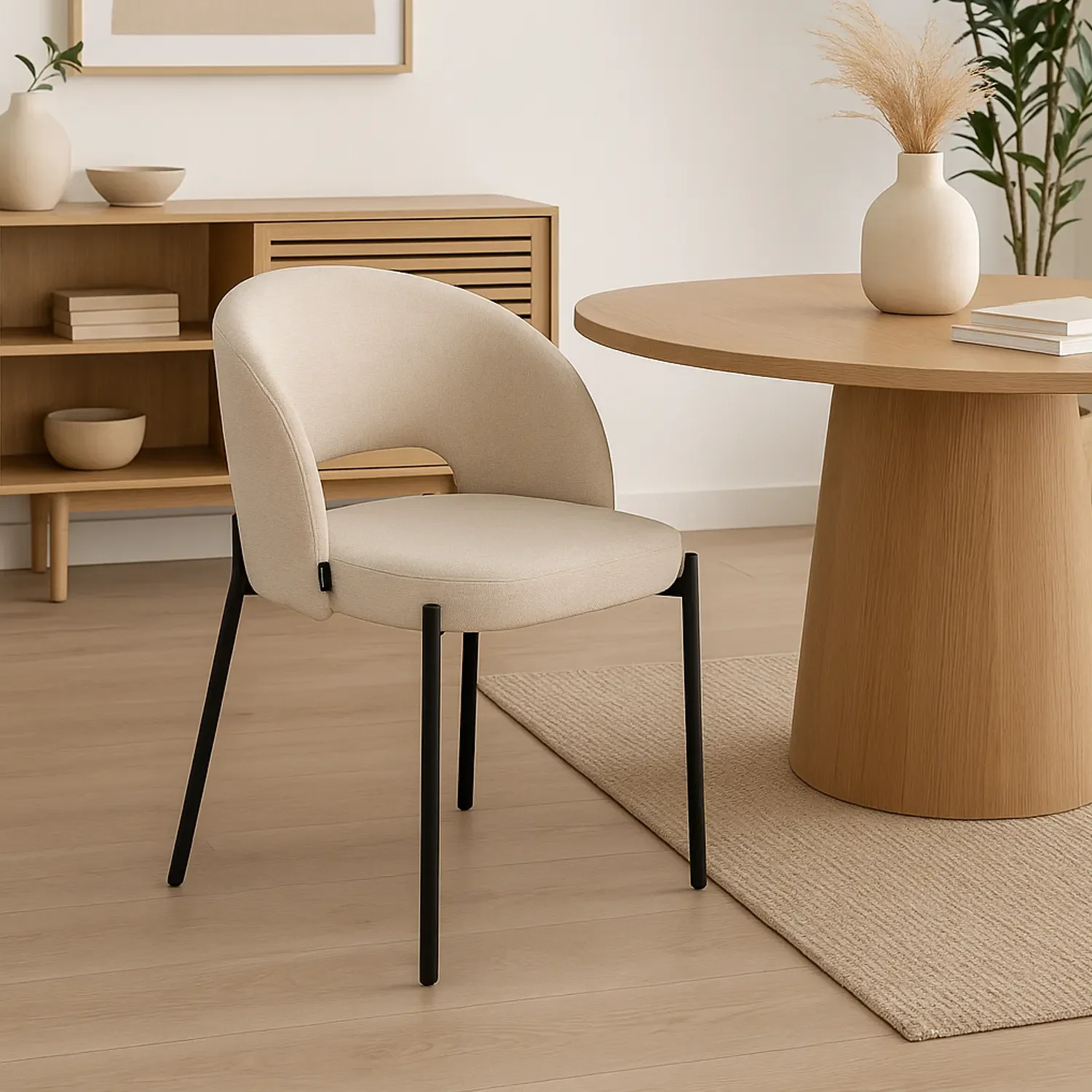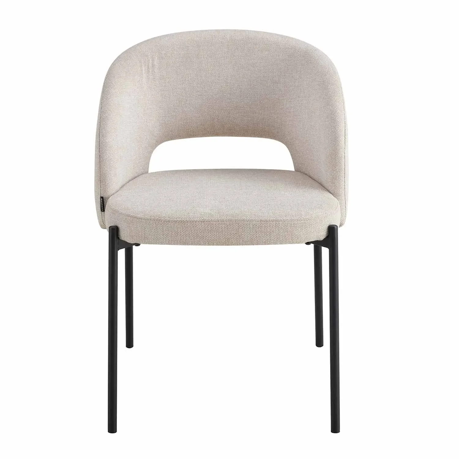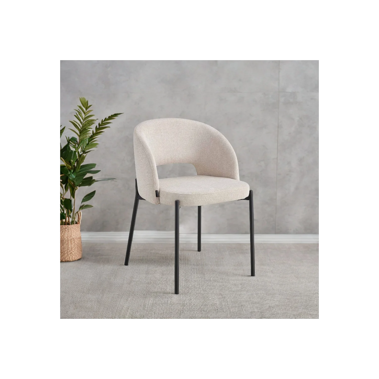Le gambe in metallo nero non solo aggiungono un contrasto visivo attraente, ma assicurano anche una struttura robusta e durevole. Questa poltrona è ideale sia per la sala da pranzo che per un ufficio elegante, combinando funzionalità con un design contemporaneo.