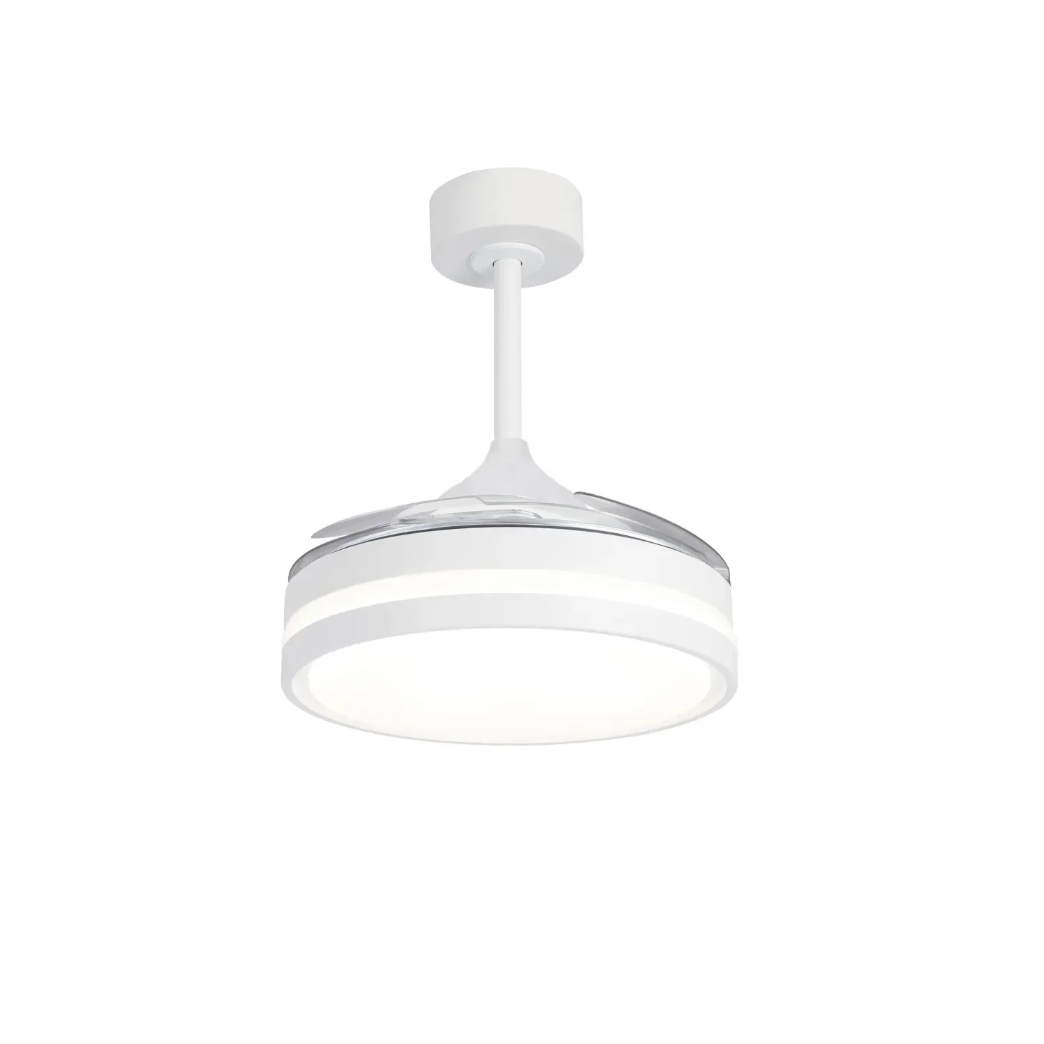 Il ventilatore da soffitto Triana 24W LED è un gioiello di design moderno e funzionalità avanzata. Le sue pale pieghevoli in PC trasparente non solo gli conferiscono un aspetto elegante, ma ottimizzano anche lo spazio quando non vengono utilizzate. Il corpo in alluminio bianco opaco e il diffusore in acrilico garantiscono una lunga durata e uno stile contemporaneo che si adatta a qualsiasi arredamento.