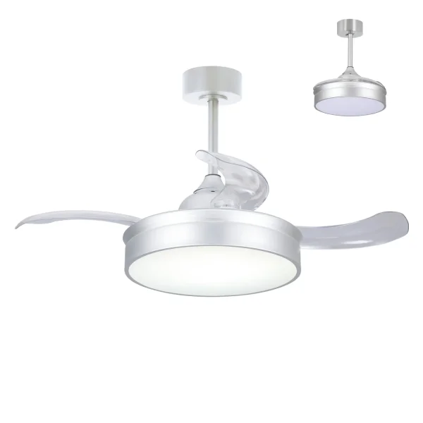 VENTILATORE DA SOFFITTO LED 24W REGOLABILE ARGENTO 4 PALE PIEGHEVOLI MOTORE DC PALMA