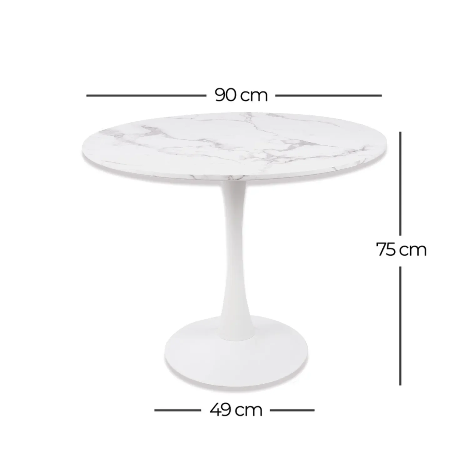 Il tavolo da pranzo rotondo effetto marmo bianco San Antoni Ø90 cm è il pezzo perfetto per aggiungere un tocco di eleganza e raffinatezza alla vostra sala da pranzo. Con un design elegante e materiali di alta qualità, questo tavolo si distingue per la sua durata e l'estetica impeccabile.