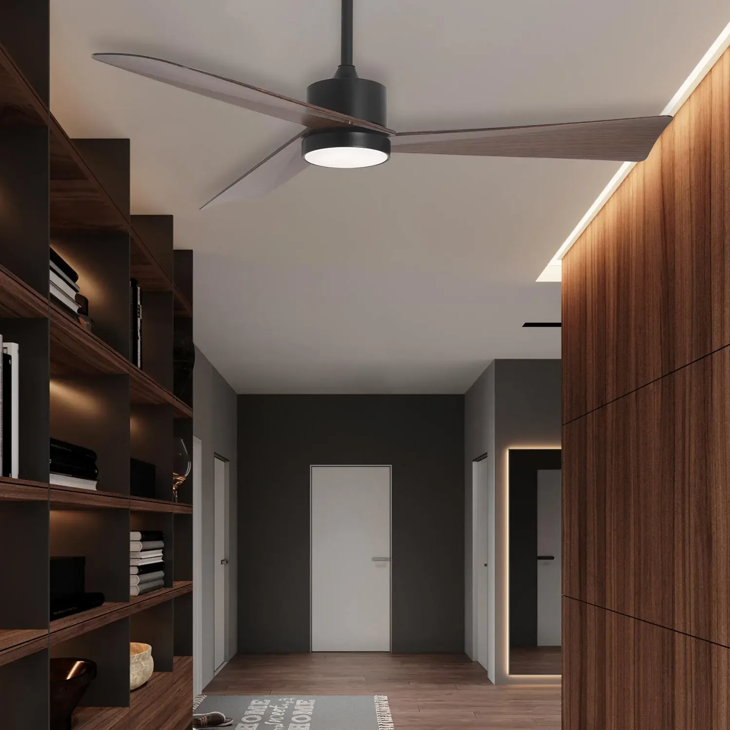È un ventilatore da soffitto con motore a corrente continua ultra-silenzioso, ideale per le stanze in cui il comfort e la silenziosità sono essenziali. Le pale in ABS con finitura in legno di noce aggiungono un tocco caldo e naturale che contrasta con il corpo in alluminio nero, creando un pezzo moderno e sofisticato che si adatta a qualsiasi arredamento.