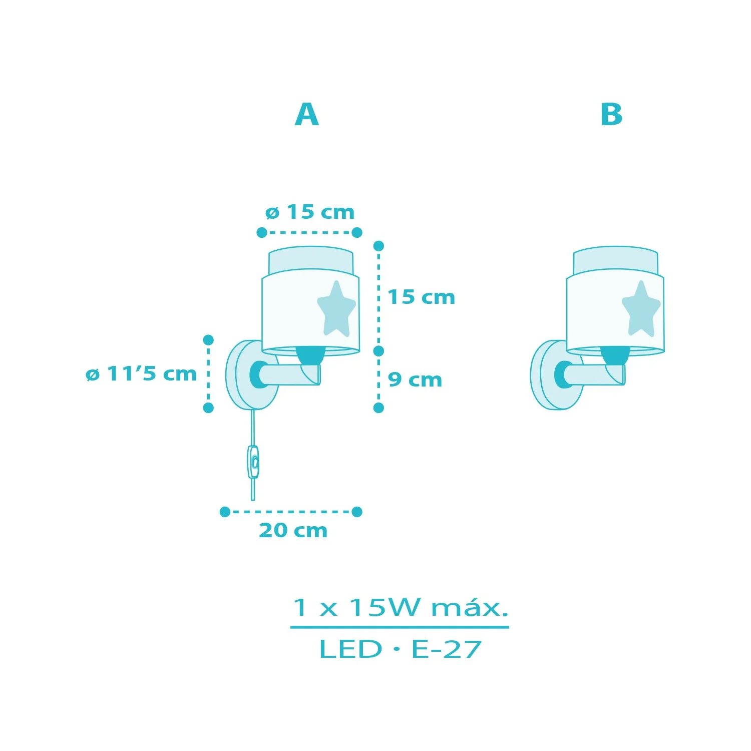 Perfetta per camere da letto e aree gioco, questa applique da parete unisce stile e funzionalità. Il design in polipropilene e il colore blu la rendono un'aggiunta armoniosa a qualsiasi cameretta, portando un tocco di dolcezza e fascino che renderà ogni notte speciale.