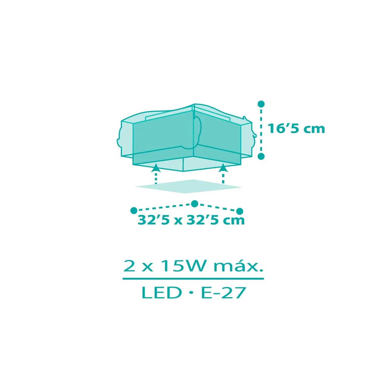 L'installazione è rapida e semplice. Fissa il plafoniera al soffitto e inserisci due lampadine LED E27 (non incluse) fino a 15W ciascuna per un'illuminazione perfetta. Assicurati che il plafoniera sia fissato correttamente per garantire la sua sicurezza.