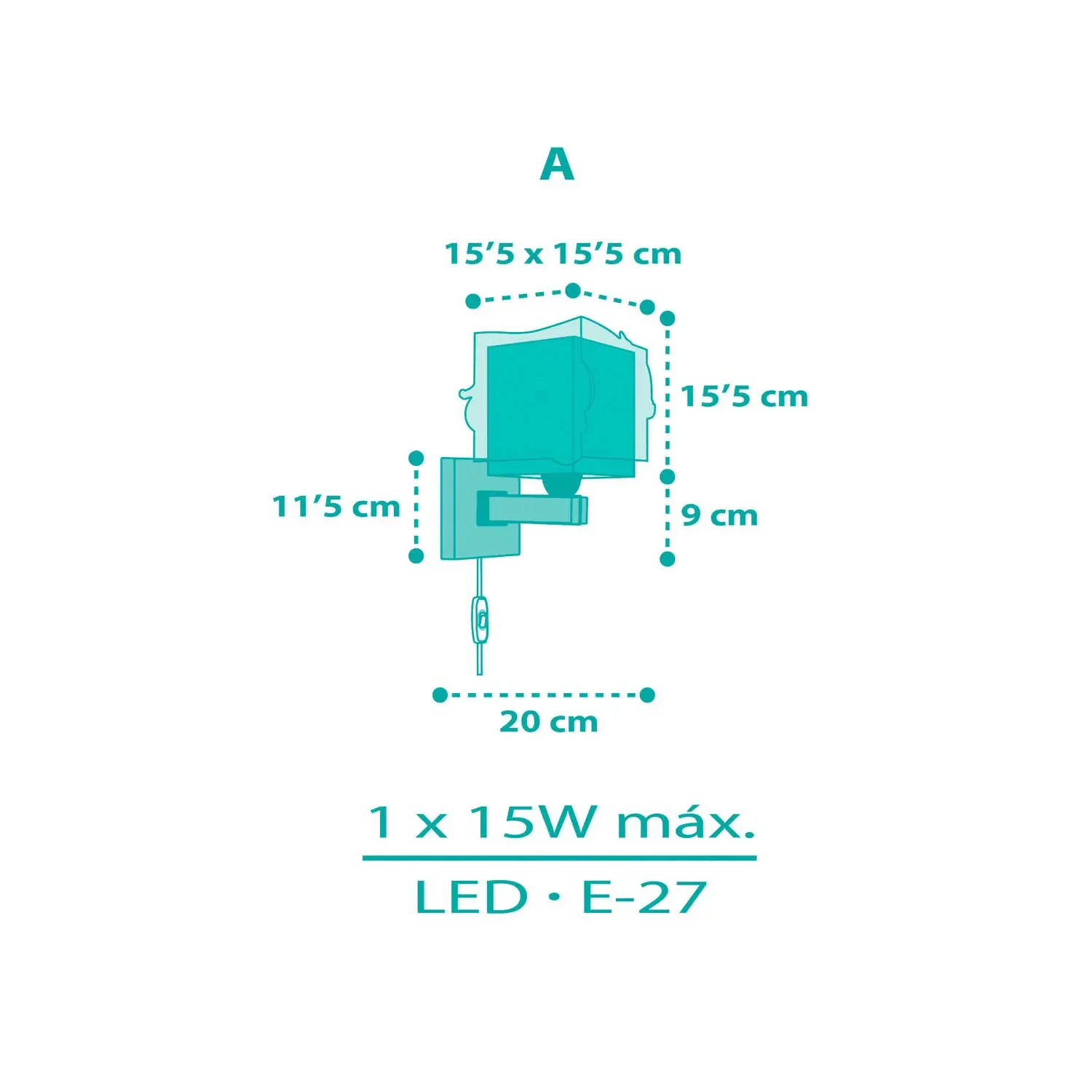 L'applique si adatta a diversi tipi di installazione, con o senza cavo, e viene fornita con un interruttore per maggiore comodità. Funziona con una lampadina LED E27 (non inclusa), rendendola una scelta economica e a basso consumo. Con un design sicuro, pratico e duraturo, realizzata con materiali di qualità, questa applique è ideale per decorare e illuminare ogni camera per bambini.