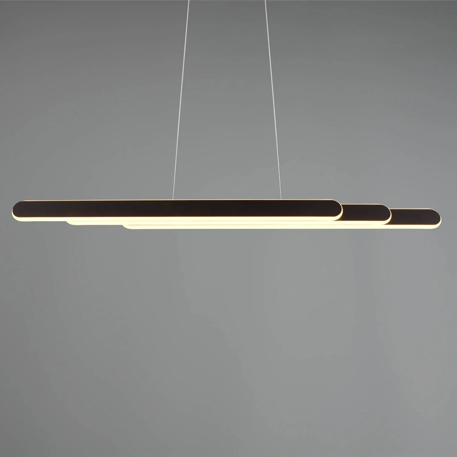 La plafoniera a sospensione Helena non solo illumina, ma trasforma lo spazio con il suo design sofisticato e le sue funzionalità avanzate. La sua finitura nera aggiunge un tocco moderno e minimalista, mentre la tecnologia touch semplifica la regolazione della luce. Ideale per risolvere problemi di illuminazione irregolare, grazie alla sua luce bidirezionale, e adattabile a qualsiasi ambiente grazie al suo design estensibile.