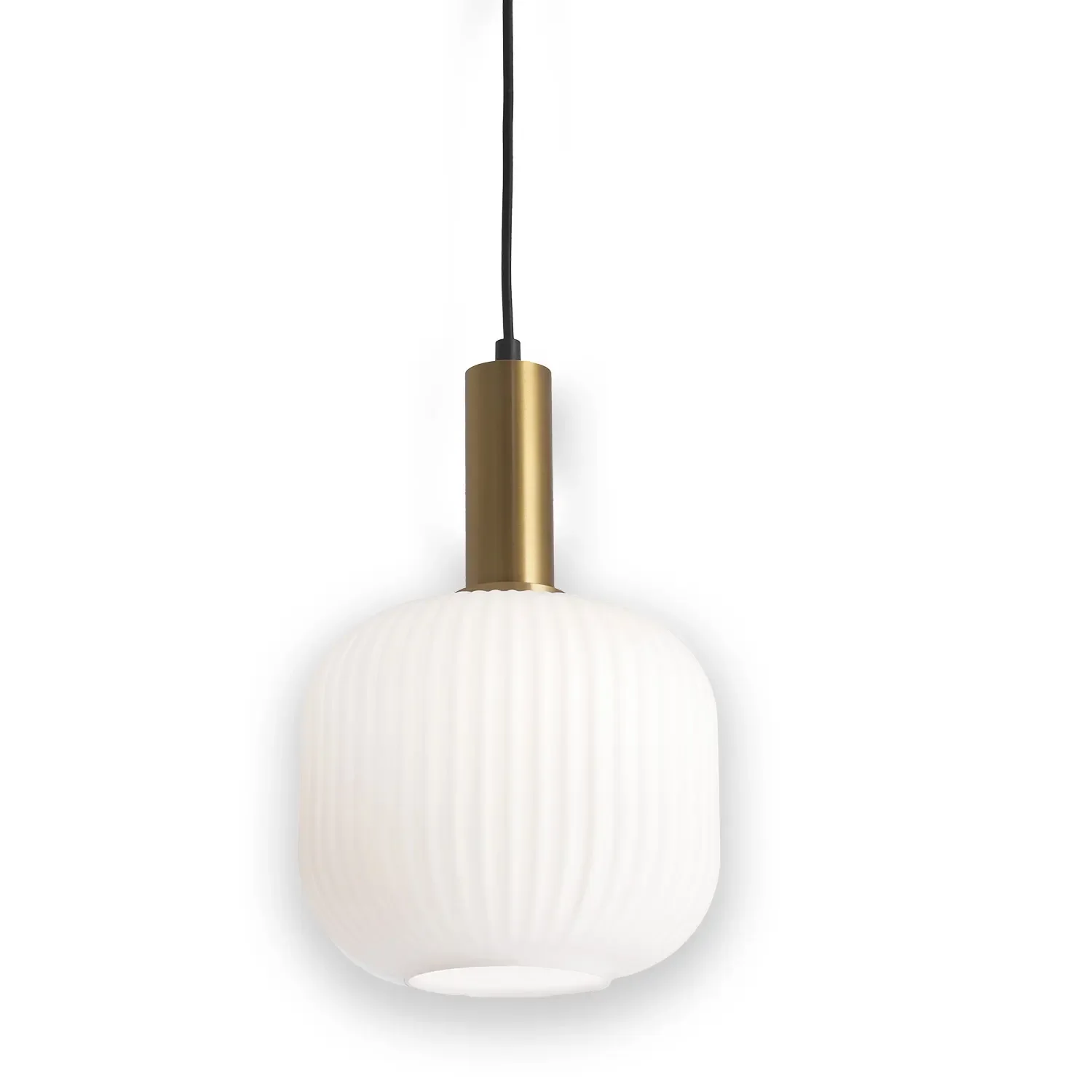 La lampada Shelby Ø 20 cm unisce sofisticazione e funzionalità. La tulipa opalina crea una luce morbida, la struttura dorata aggiunge raffinatezza e l’altezza regolabile la rende versatile per ogni ambiente.