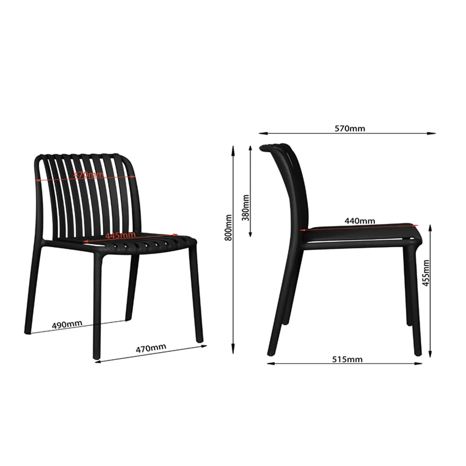 Oltre all'estetica curata, questa sedia offre una grande resistenza agli agenti atmosferici, poiché incorpora una protezione anti-UV che impedisce al materiale e al colore di degradarsi nel tempo. La sua impilabilità la rende una scelta eccellente per gli spazi ridotti o per chi ha bisogno di riporre diverse unità in modo efficiente e ordinato.