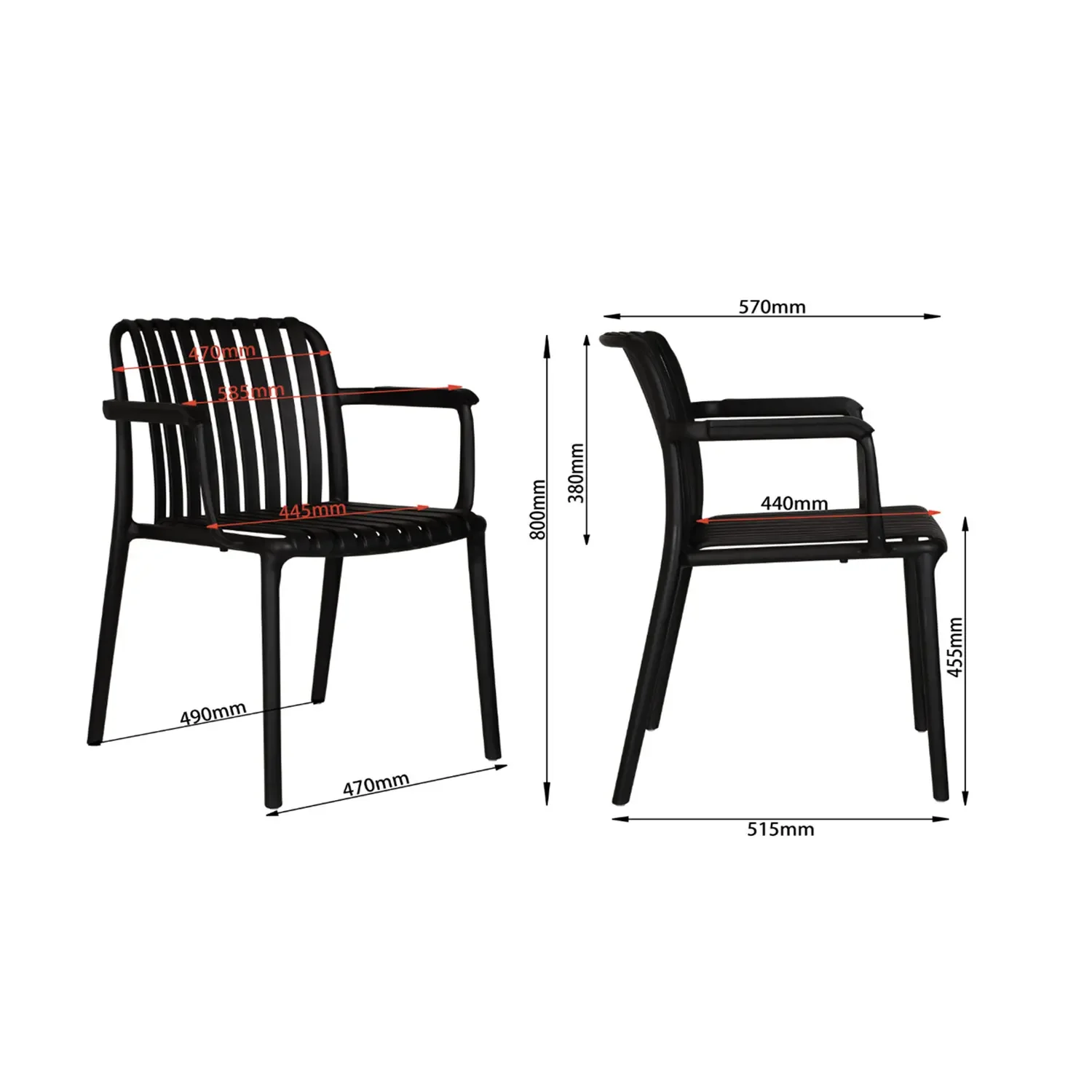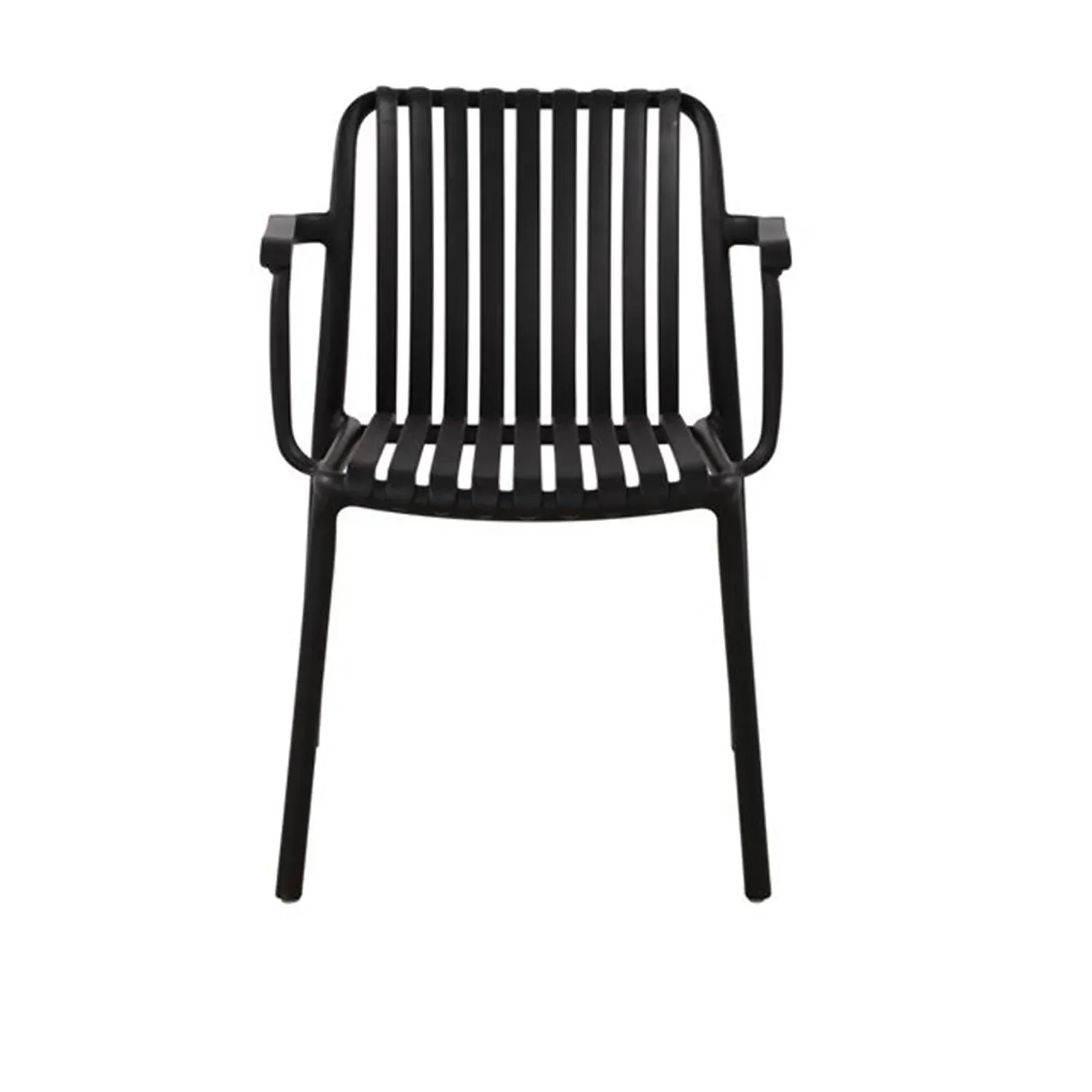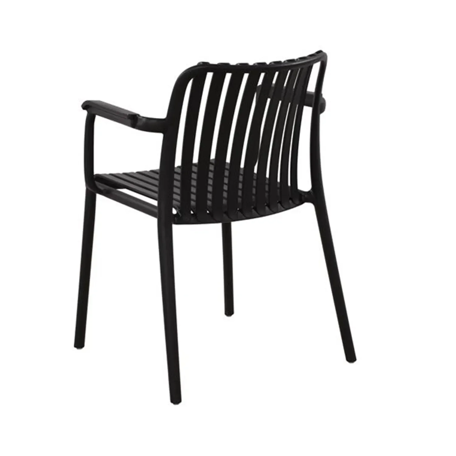Aggiungete la Sedia da giardino Aeolian con braccioli in polipropilene nero ai vostri spazi esterni e godetevi il massimo comfort all'aperto!