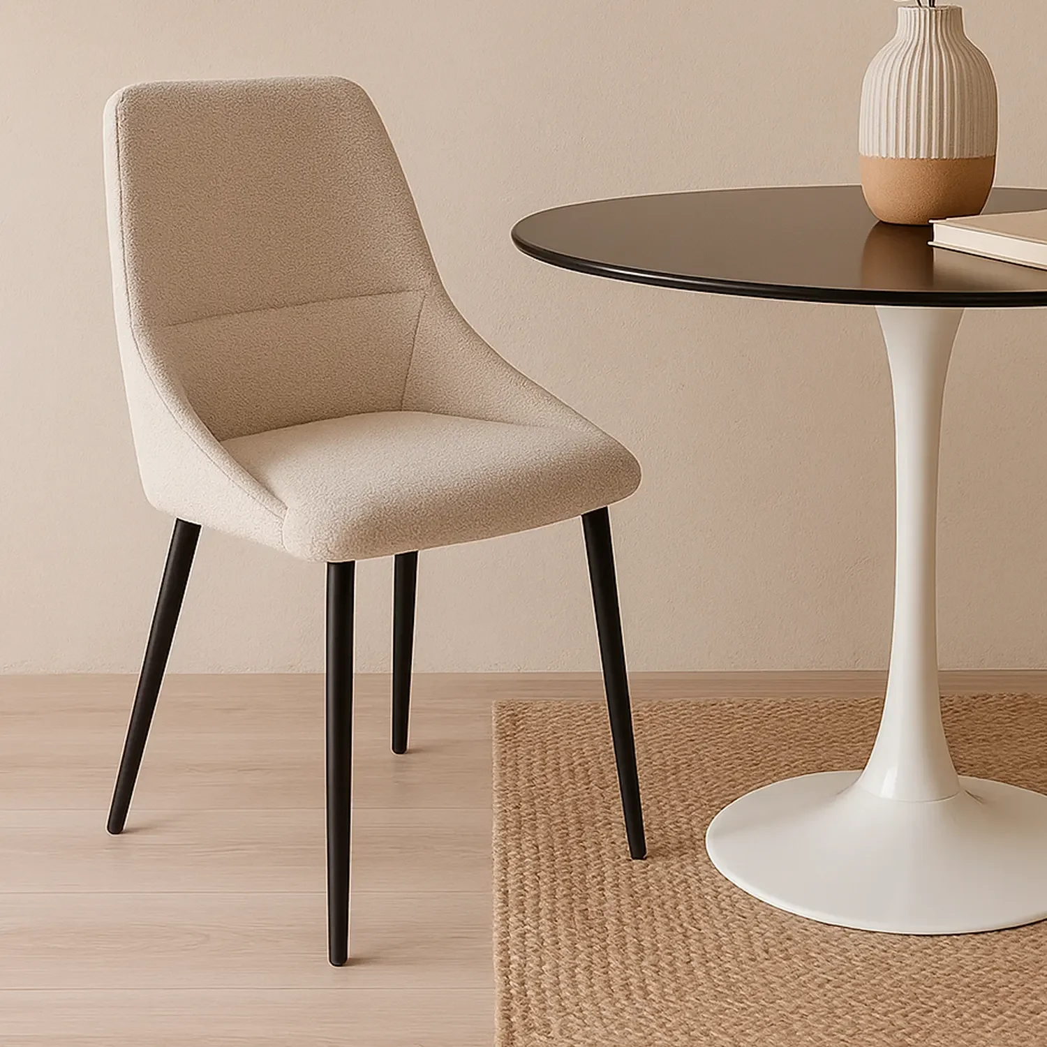 La Sedia da Pranzo Adney Tessuto Sabbia Gambe Nere è un pezzo elegante e versatile che unisce comfort e design intramontabile. Le sue principali caratteristiche sono: