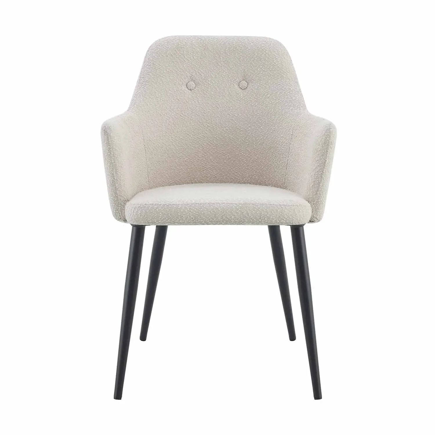 Il rivestimento in colore sabbia trasmette neutralità e calore, adattandosi facilmente a diversi stili di arredamento. È la scelta perfetta sia per ambienti di uso quotidiano che per zone relax. Grazie al design ergonomico, offre un sostegno confortevole che favorisce una postura corretta. Le gambe nere in metallo creano un contrasto elegante con la tonalità chiara della seduta, dando vita a un equilibrio visivo che valorizza qualsiasi salotto, sala da pranzo o ufficio moderno.