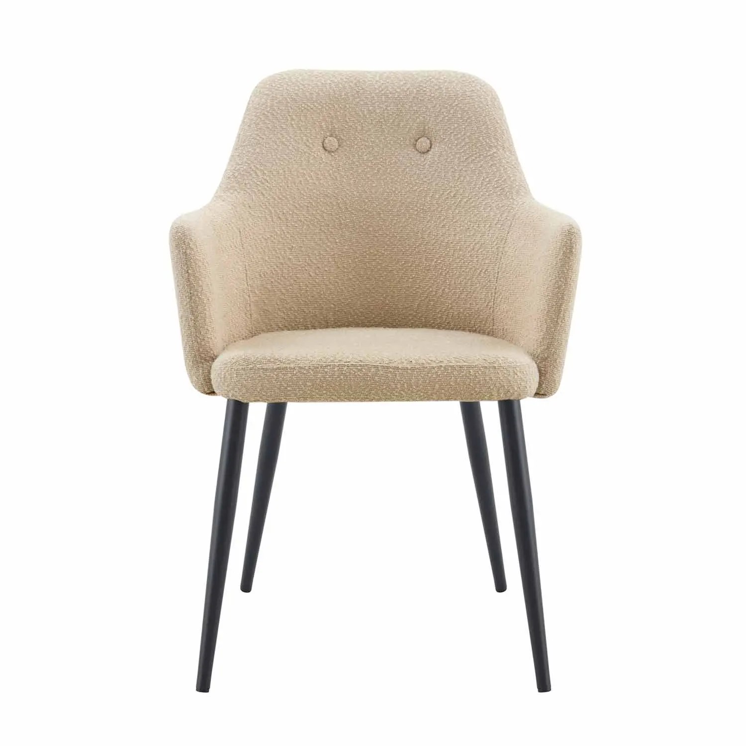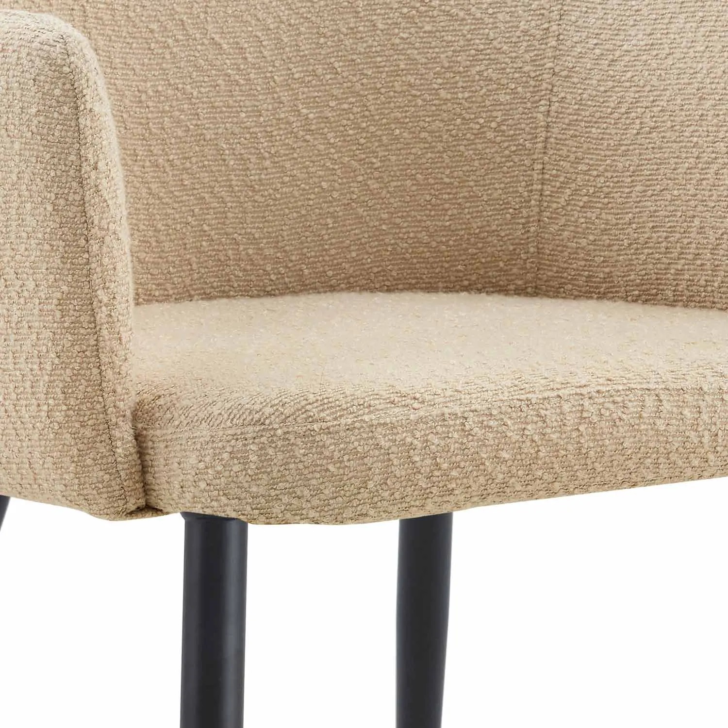 Il suo rivestimento color sabbia offre neutralità e calore, consentendo di adattarsi a diversi stili decorativi. È la scelta perfetta sia per l'uso quotidiano che per le aree di riposo. Grazie al suo design ergonomico, offre un sostegno confortevole che favorisce la postura. Le gambe in metallo con finitura nera contrastano con la tonalità chiara della seduta, creando un equilibrio visivo che la fa risaltare in qualsiasi salotto, sala da pranzo o ufficio moderno.