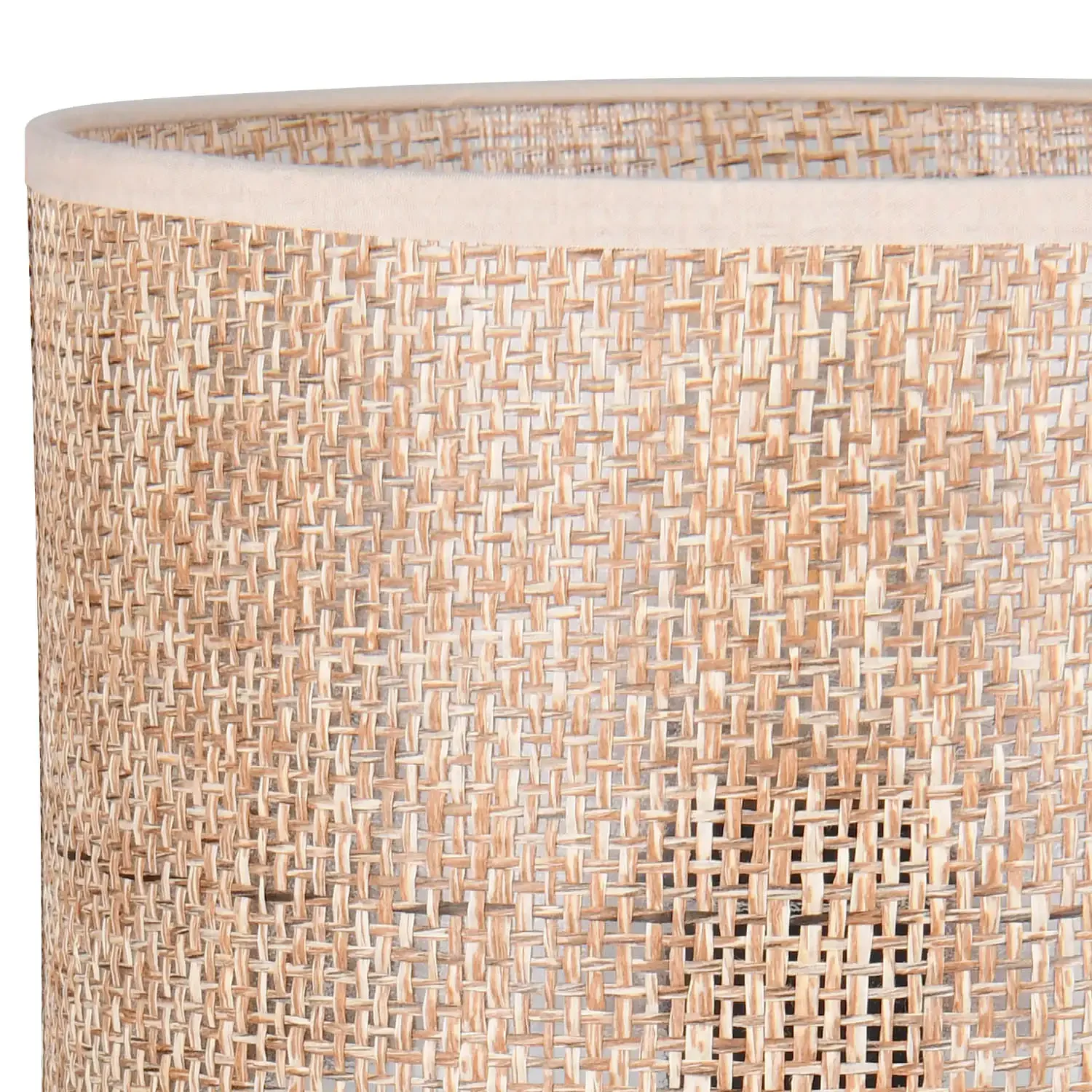 - Design moderno e naturale con base in acciaio cromato e paralume in vimini.