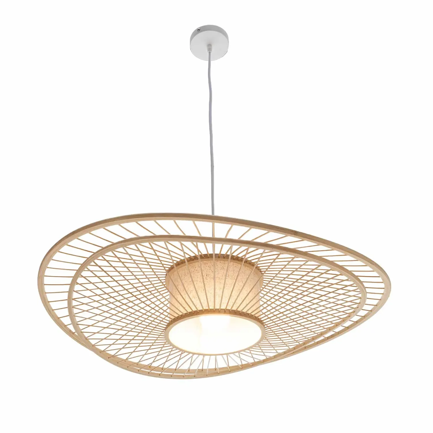LAMPADA A SOSPENSIONE IN LEGNO E TESSUTO Ø70CM E27 MALAI