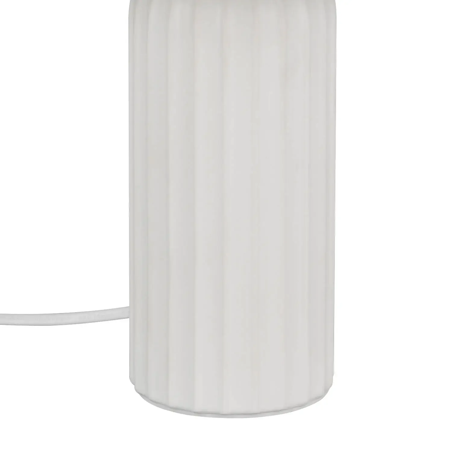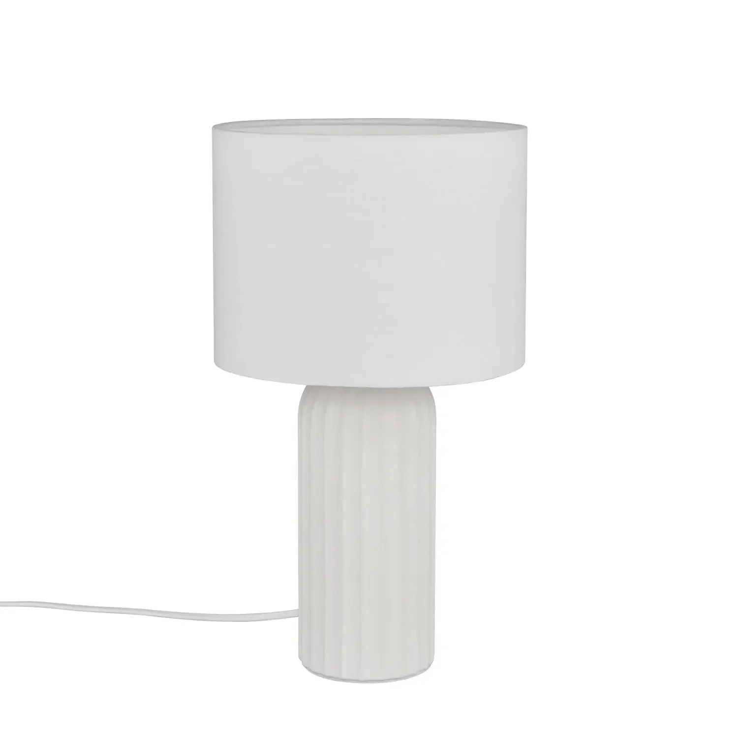 La base in ceramica bianca offre una finitura elegante e resistente, mentre il paralume in tessuto diffonde la luce evitando riflessi fastidiosi, creando un ambiente piacevole per leggere, lavorare o rilassarsi. Il design minimalista si integra facilmente in diversi stili decorativi, moderni o classici.