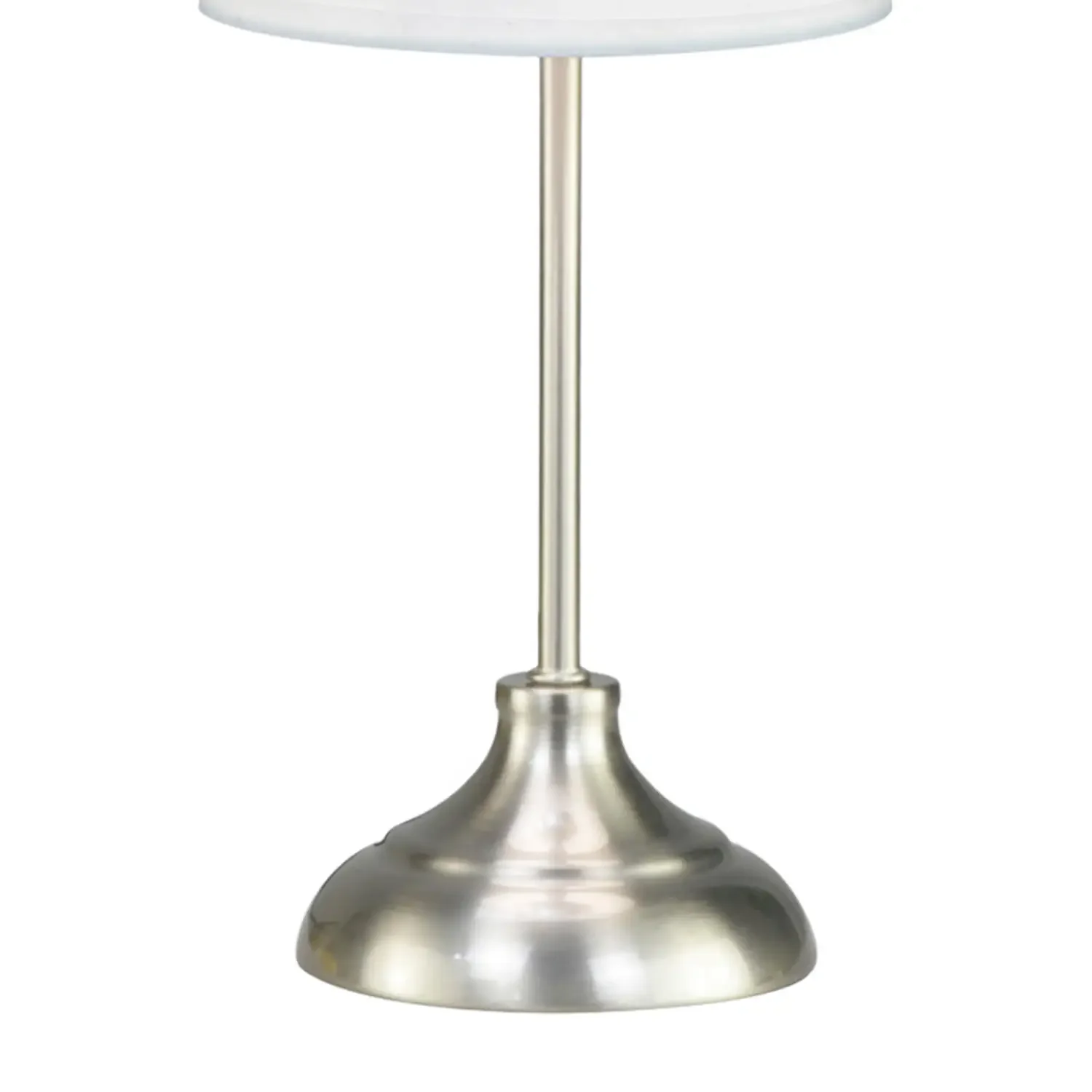 - Base in metallo nichel satinato con paralume in tessuto coordinato