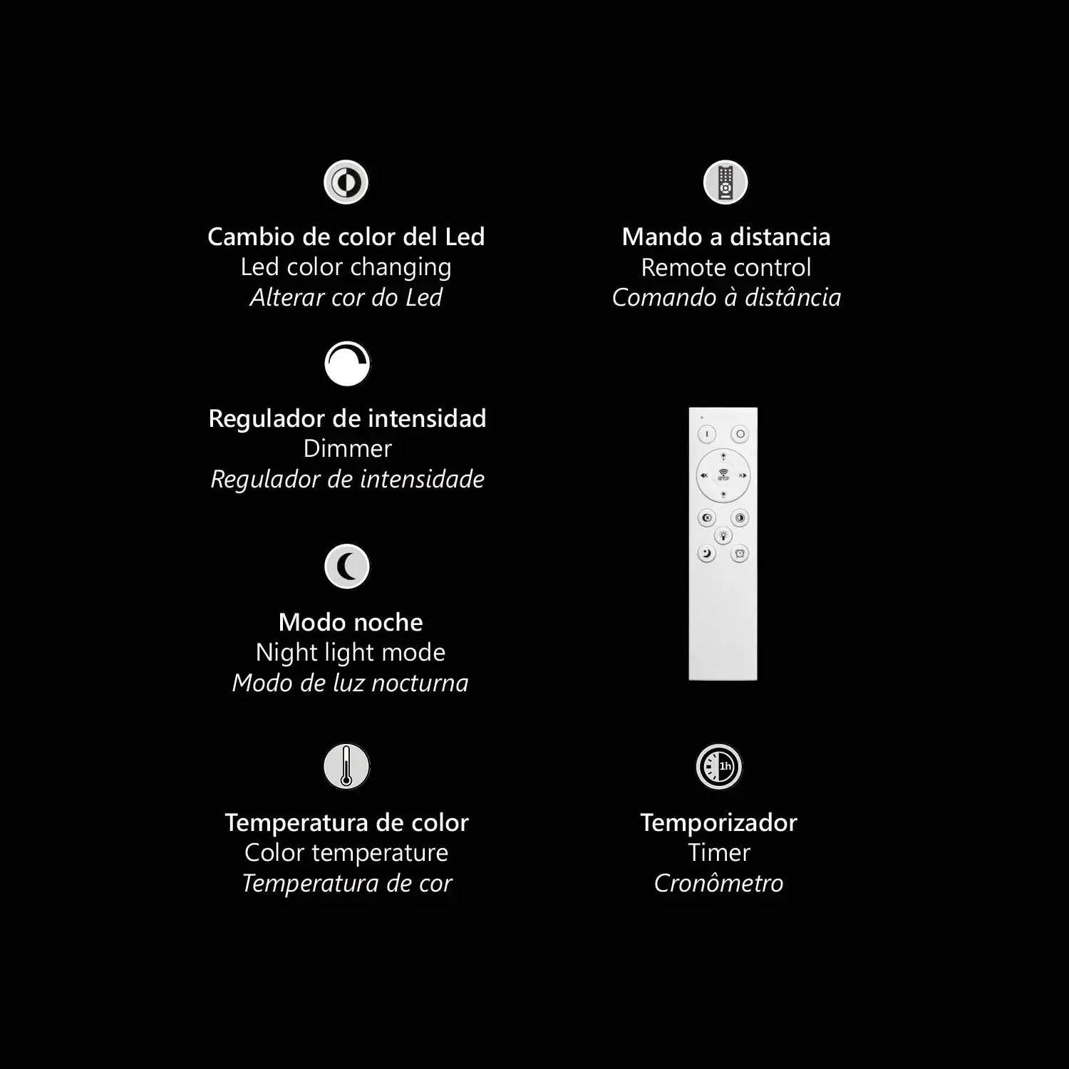 - Funzioni avanzate: regolatore di intensità, timer, modalità notte e telecomando incluso.