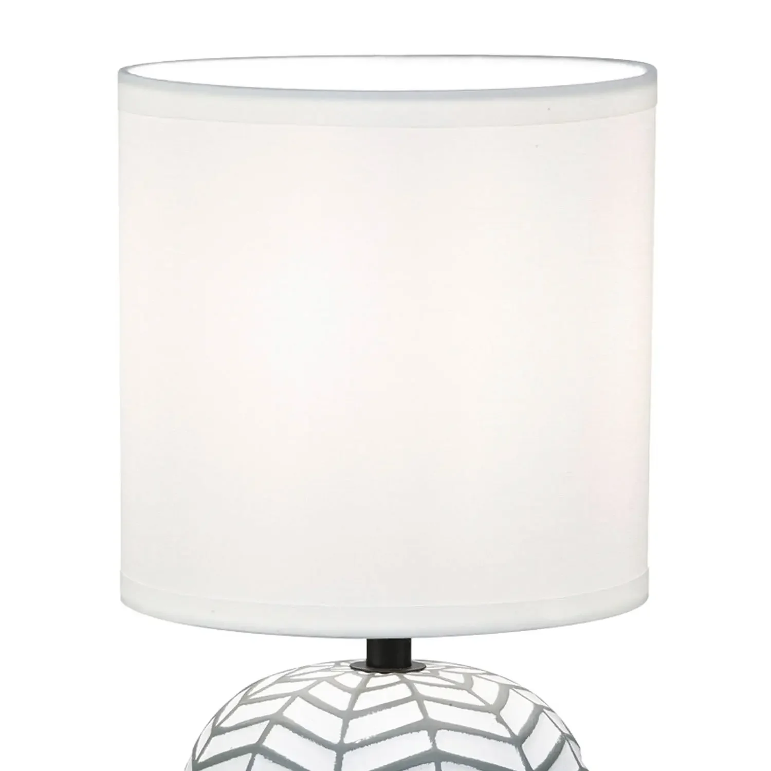 La combinazione di bianco e grigio crea un mix di tonalità neutre che si integra facilmente in ambienti moderni, nordici o minimalisti. La base in ceramica dona un tocco elegante e senza tempo, mentre il paralume in tessuto bianco diffonde la luce creando un’atmosfera calda e rilassante.