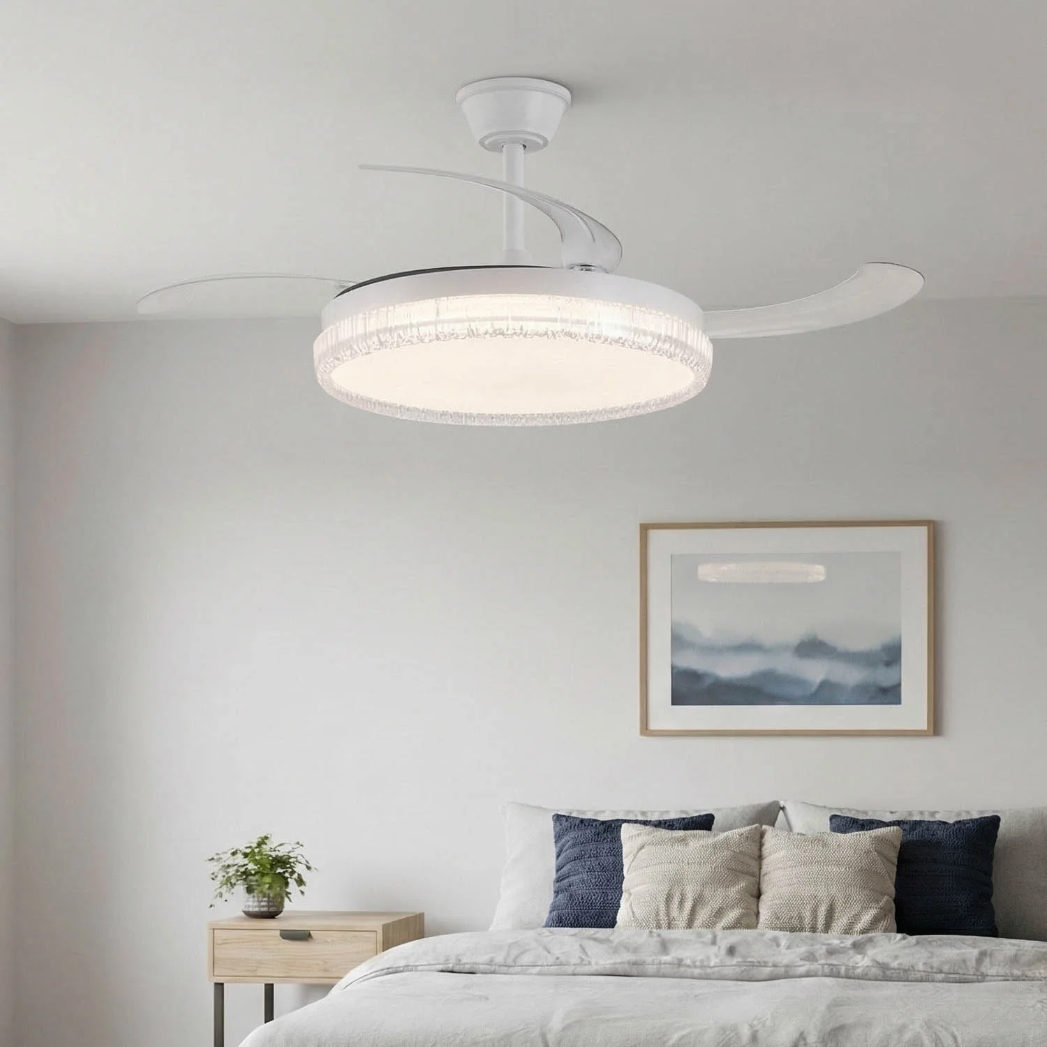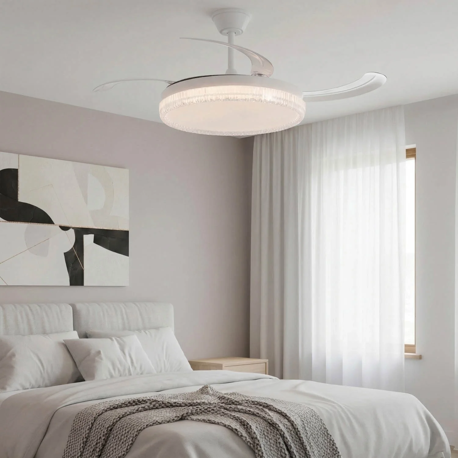 Il ventilatore Nerio offre ventilazione regolabile, luce adattabile e profilo compatto grazie alle pale retrattili. Il motore DC permette di adattare la velocità alle necessità, combinando comfort ed efficienza energetica. Ideale per chi cerca un ventilatore silenzioso, potente e moderno, con stile e funzionalità.
