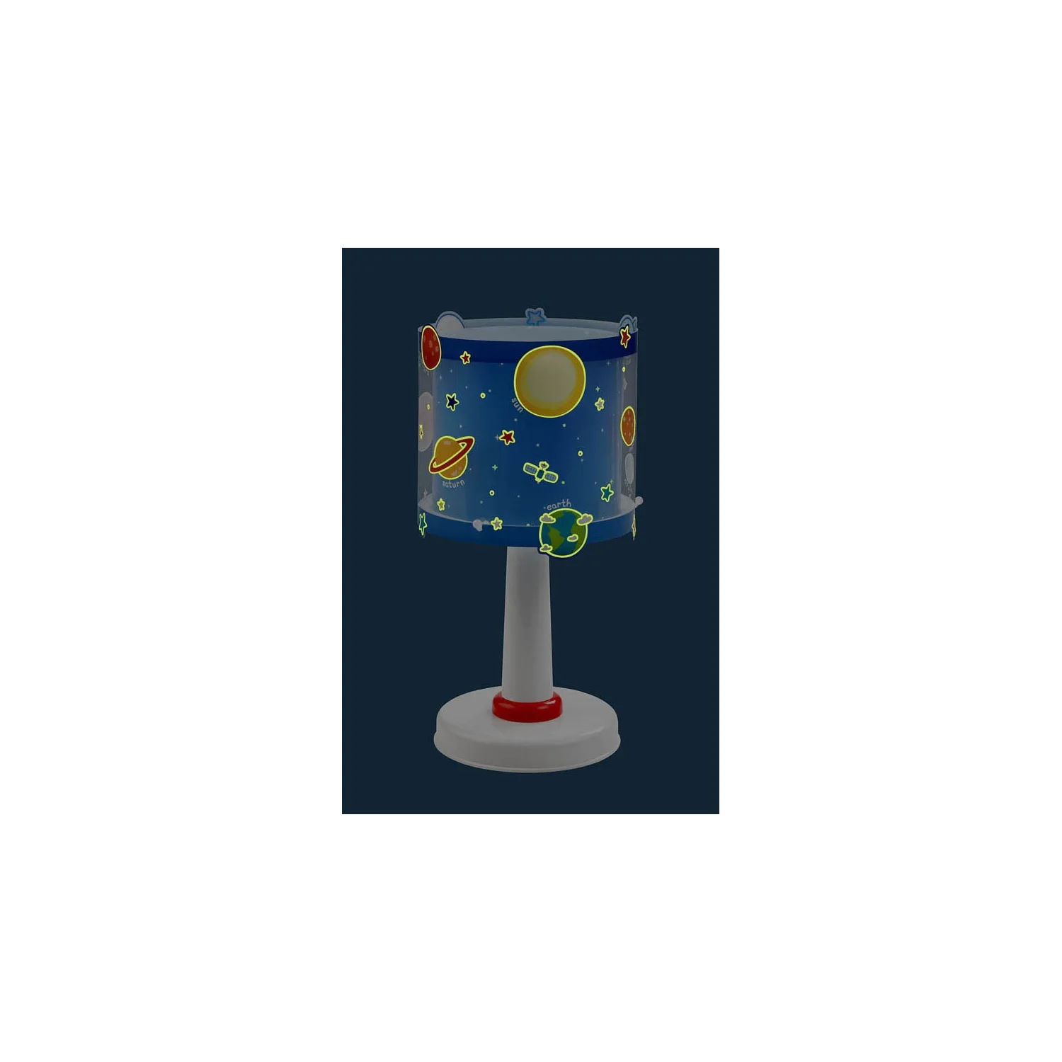 LAMPADA DA TAVOLO PER BAMBINI PLANETS è costituita da una struttura in PVC blu con disegni di pianeti. L'unicità di questa lampada per bambini è rappresentata dai pianeti.